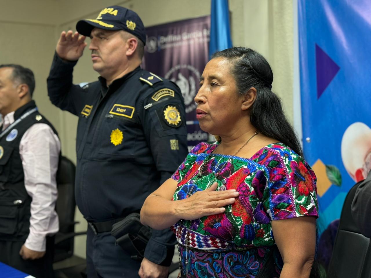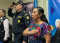 Posteriormente, la gobernadora departamental en la Comisaría 44 de Totonicapán, realizó el recibimiento, esta vez acompañada por el jefe de distrito de la PNC, Erick Rolando Osoy López.
