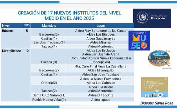 Santa Rosa, 14 nov (AGN). – El Ministerio de Educación (Mineduc) informa a la ciudadanía que, como parte de las acciones para garantizar el acceso equitativo y porque El Pueblo Digno Es Primero, durante el año 2025 fueron construidos 17 nuevos centros educativos en el departamento de Santa Rosa.