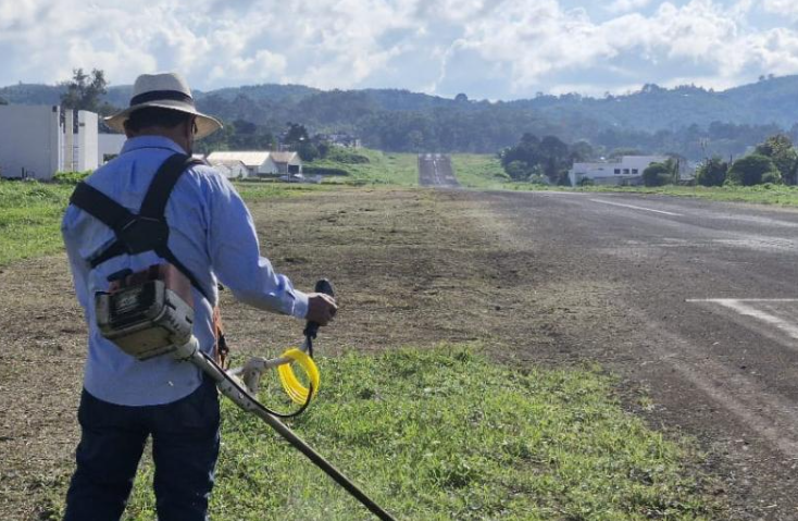 El aeródromo también registra un 80 % de avance en la fumigación de la franja de pista, acción que mejora las condiciones operativas y de seguridad.