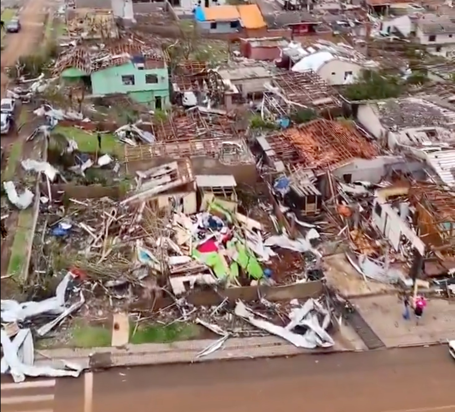 Según la Defensa Civil, el fenómeno, con vientos fuertes, tempestad y granizo, destruyó cerca del 80 % de los inmuebles de Río Bonito do Iguaçu, ciudad de unos 13.500 habitantes y en donde los fuertes vientos destejaron decenas de viviendas y derribaron numerosos árboles y postes del tendido eléctrico.