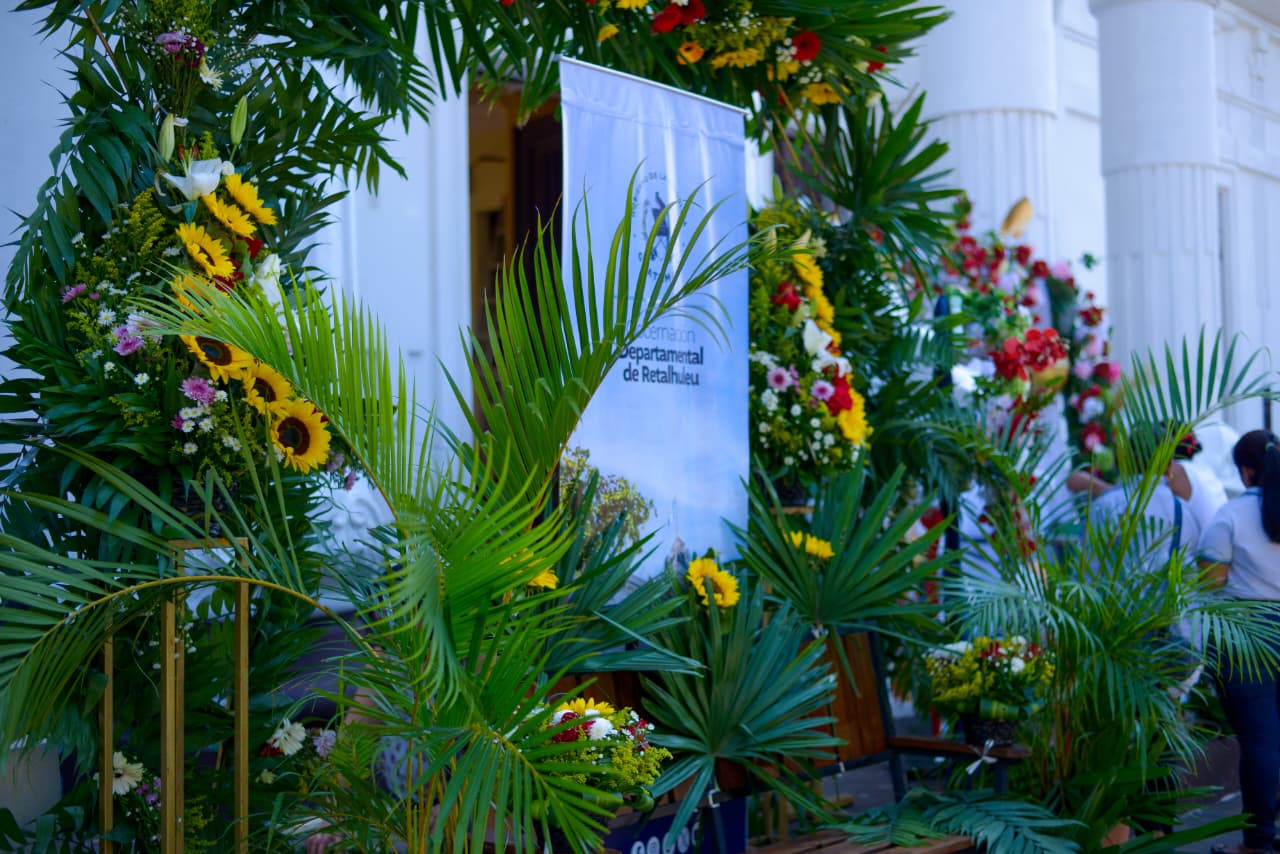 El centro histórico se embelleció con arreglos florales y decoraciones artísticas elaboradas por más de 37 comercios locales, quienes transformaron sus espacios en coloridos stands que sirvieron como puntos de encuentro y fotografías para las familias retaltecas.