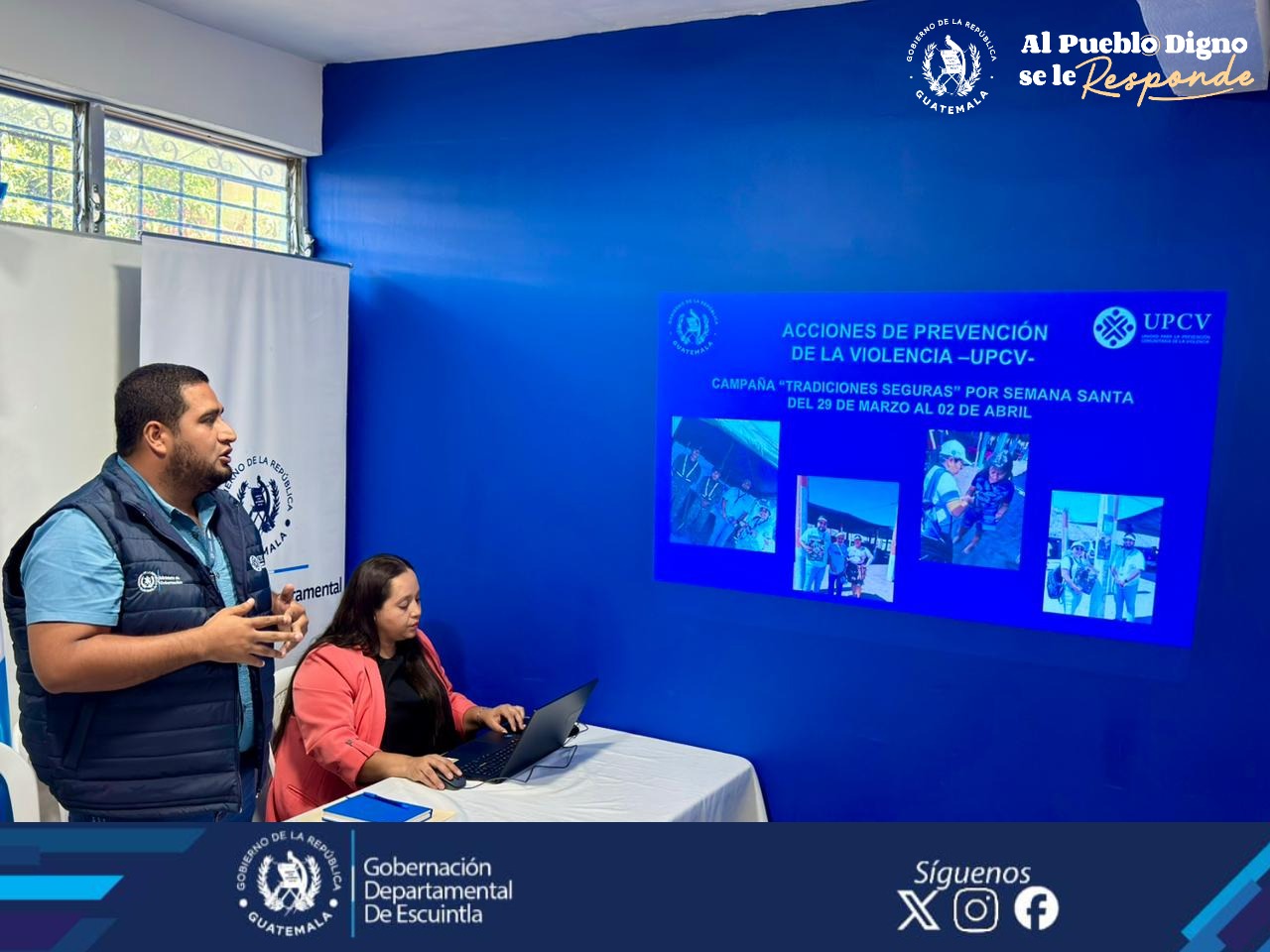 El delegado de la UPVC, Luis Muralles, presentó las acciones realizadas de la campaña Tradiciones Seguras de Semana Santa, y la campaña de Perifoneo de Prevención de Violencia contra la Mujer, una iniciativa que busca llevar mensajes de denuncia y sensibilización a las zonas más remotas del departamento.