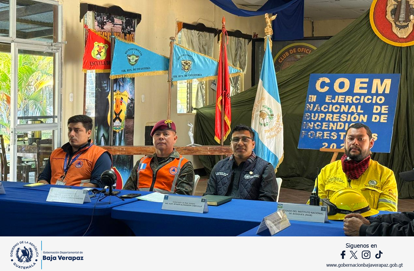La actividad contó con la participación del gobernador departamental, Mynor Chén, quien reafirmó su compromiso con la coordinación interinstitucional y el fortalecimiento de las capacidades de respuesta en los ocho municipios del departamento.