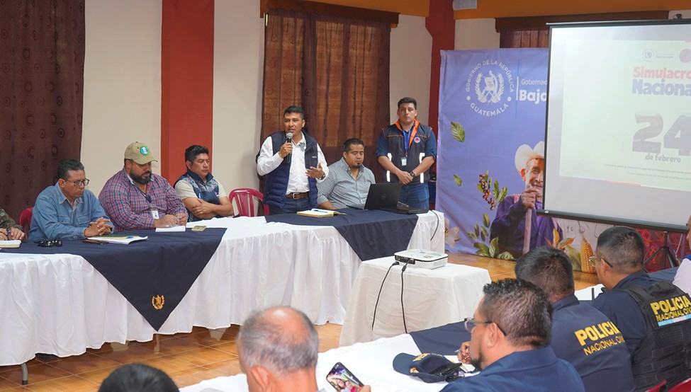En Baja Verapaz, el gobernador departamental Mynor Chen coordinó una reunión interinstitucional junto al delegado de la Coordinadora Nacional para la Reducción de Desastres (Conred) y representantes de distintas instituciones que participarán en el ejercicio.