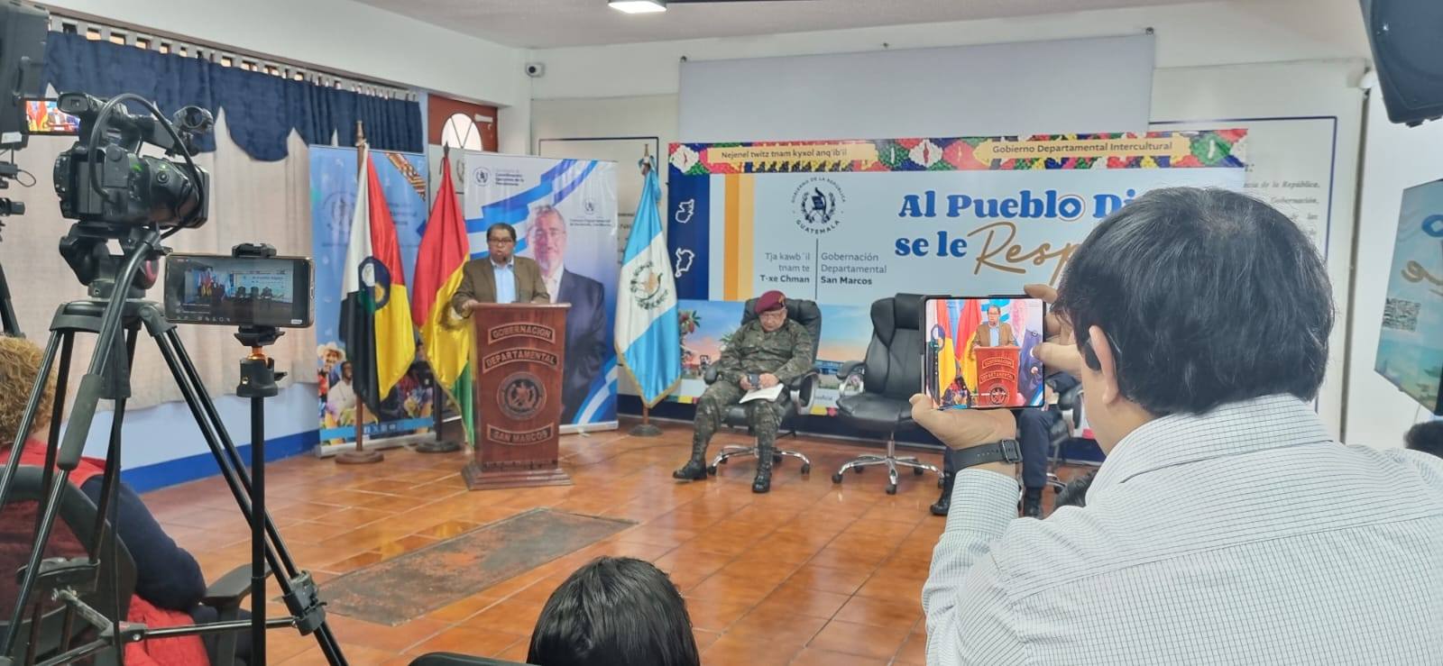 A este informe se sumaron el subcomisario de la Comisaría 42 del departamento de San Marcos y el coronel, tercer comandante de la Brigada de Operaciones para Montaña, quienes resaltaron la coordinación interinstitucional entre la Policía Nacional Civil, el Ejército de Guatemala, la Conred y otras instituciones que han unido esfuerzos para resguardar la seguridad y protección en todo el territorio departamental.