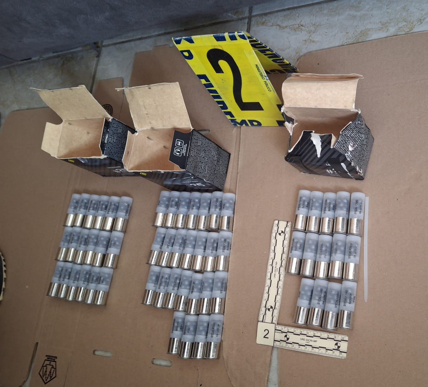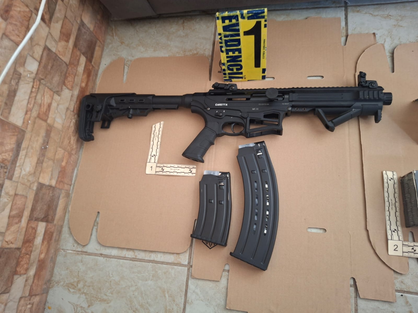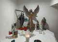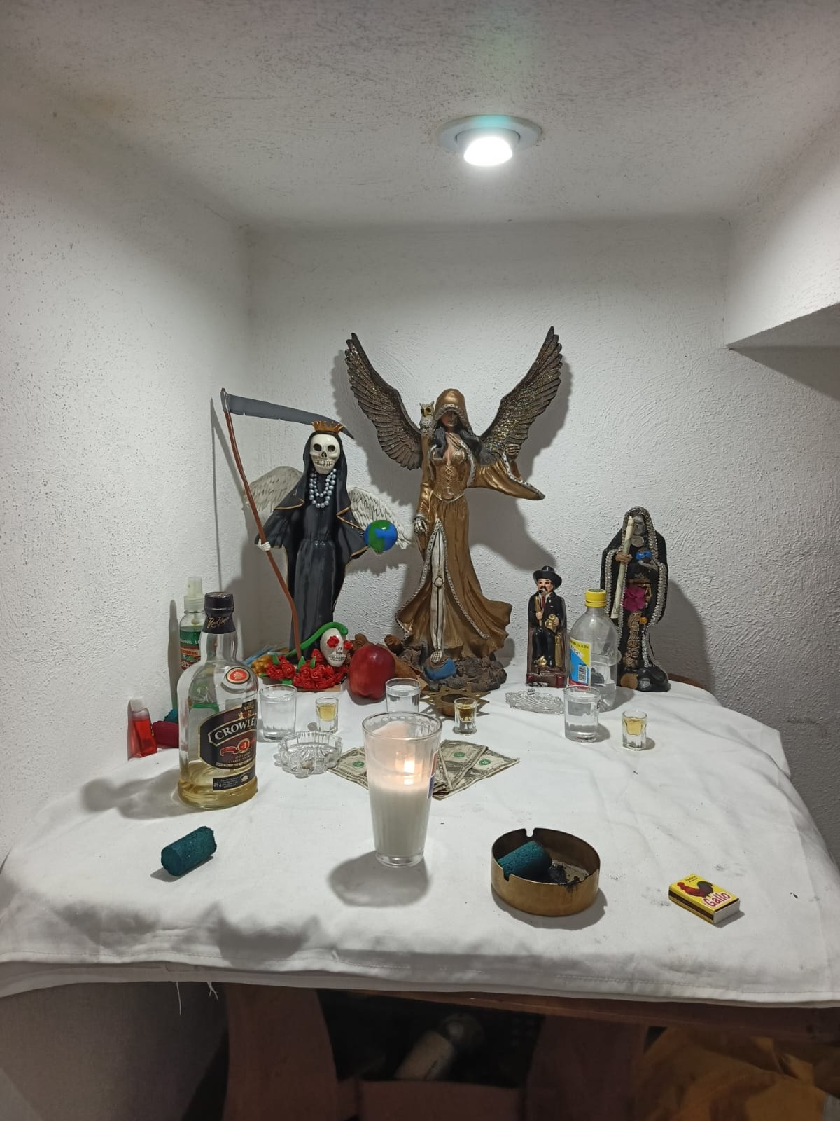 Durante la inspección de la vivienda, los agentes localizaron una escopeta ilegal, 95 municiones de diferentes calibres y un altar alusivo a la Santa Muerte.