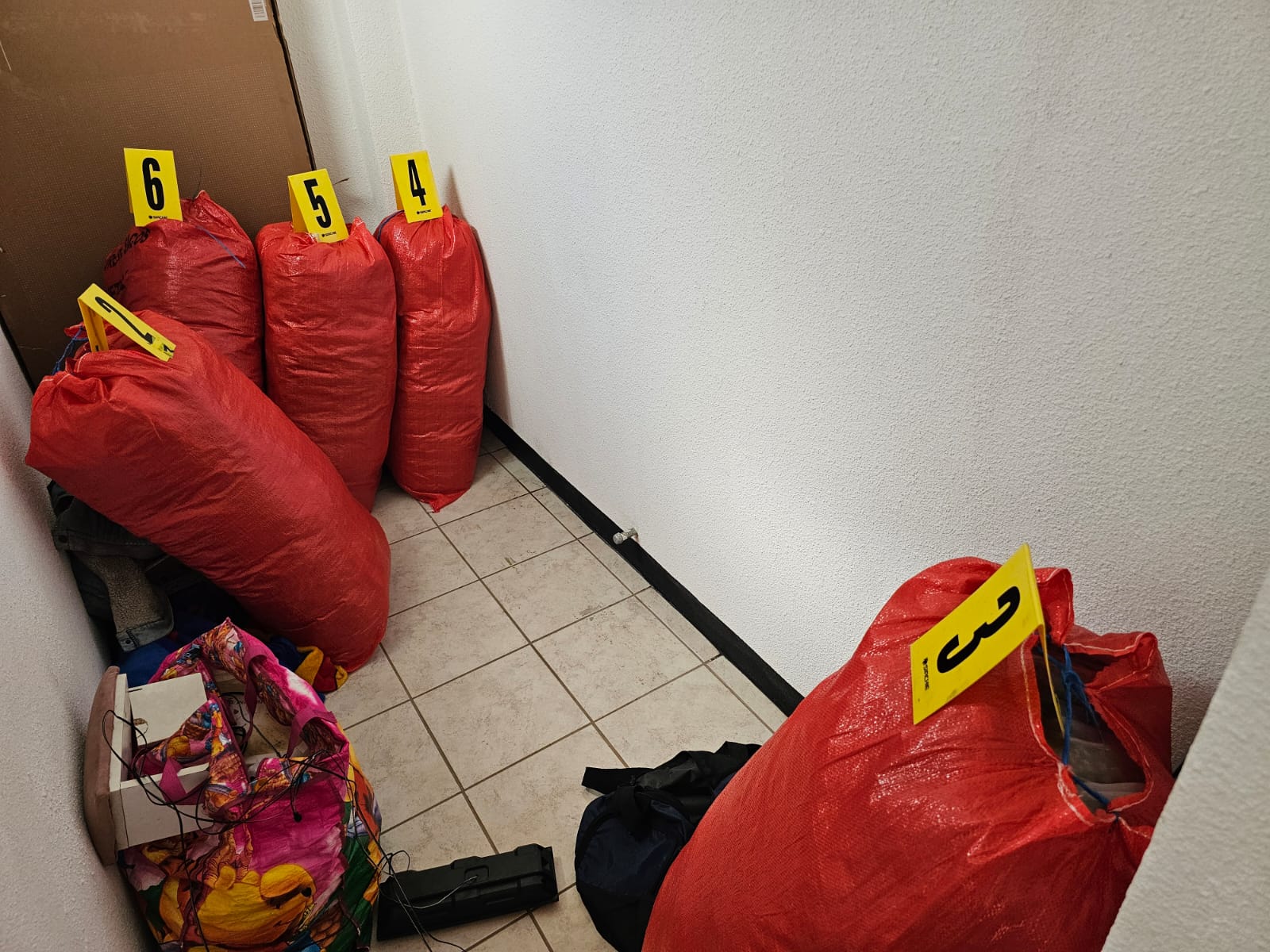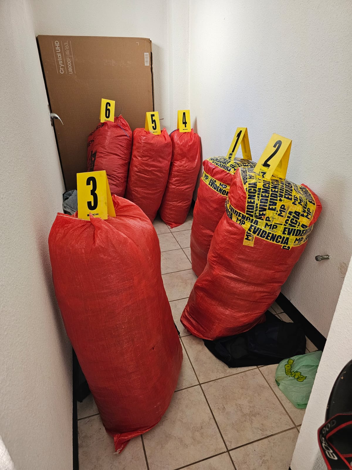 Dentro de la vivienda allanada, las autoridades encontraron seis costales con drogas.