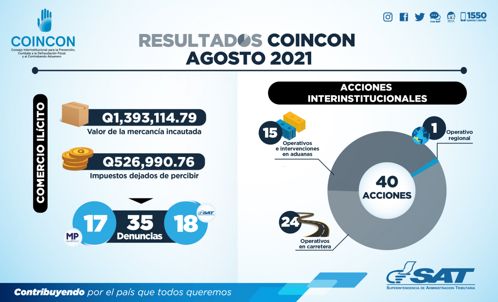 Ciudad de Guatemala, 31 dic (AGN).- Las acciones implementadas por la Comisión Interinstitucional contra el Contrabando y la Defraudación Aduanera (Coincon) han permitido despojar a las estructuras dedicadas a esos actos ilícitos de 38 millones 660 mil 26.1 quetzales en mercadería.