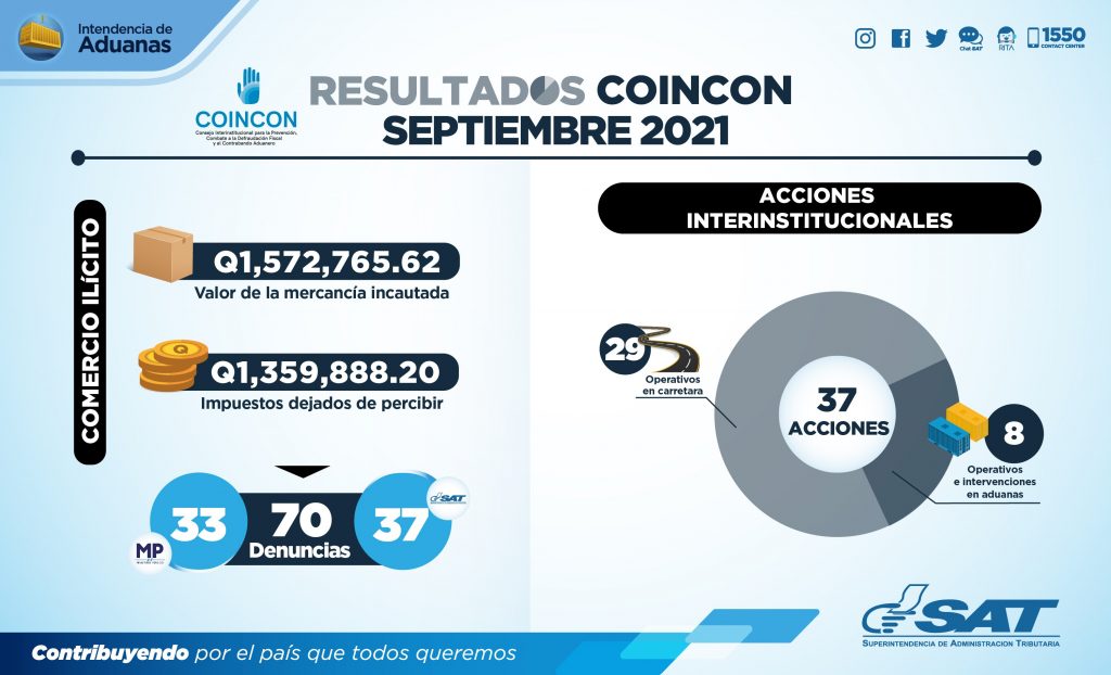 Las autoridades mantienen la lucha contra el contrabando, con el fin, no solo de evitar la afectación a la economía, sino también de proteger la salud de la población. Como parte de la estrategia, se han establecido puestos de control interinstitucional en zonas de mayor incidencia. El más reciente se inauguró el 12 de octubre, en Sanarate, El Progreso.