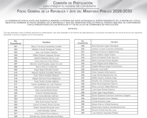 Una vez finalizada la etapa de entrevistas, la Comisión de Postulación avanzará hacia la fase de evaluación final de expedientes, programada del 13 al 16 de abril. En este período se hará la ponderación de méritos de cada candidato, tomando en cuenta factores como la experiencia profesional y la trayectoria.