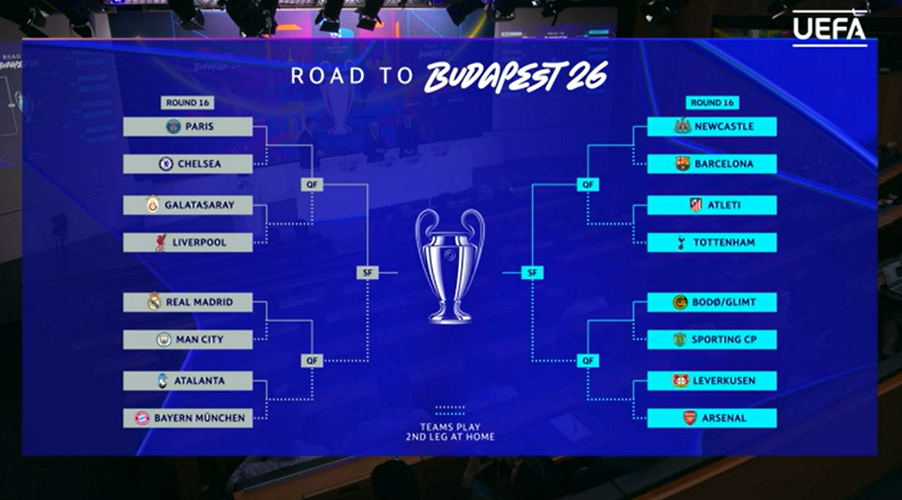 Ciudad de Guatemala, 27 feb (AGN).- Luego de una intensa serie de play-offs en la UEFA Champions League, quedaron definidos los cruces de los octavos de final del torneo de clubes más importante a nivel europeo. Tras el esperado sorteo, también se trazó el camino rumbo a la gran final que se disputará en Budapest el próximo 30 de mayo, donde solo uno logrará consagrarse como rey del continente.