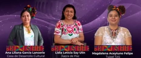 En el conversatorio participaron Ana Liliana García Lancerio, de la Casa de Desarrollo Cultural; Lidia Leticia Say Ulín, jueza de paz, y Magdalena Aceytuno Felipe, integrante de Tujaal Tziij.