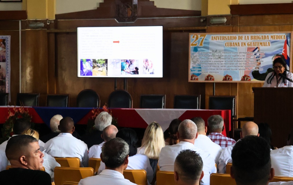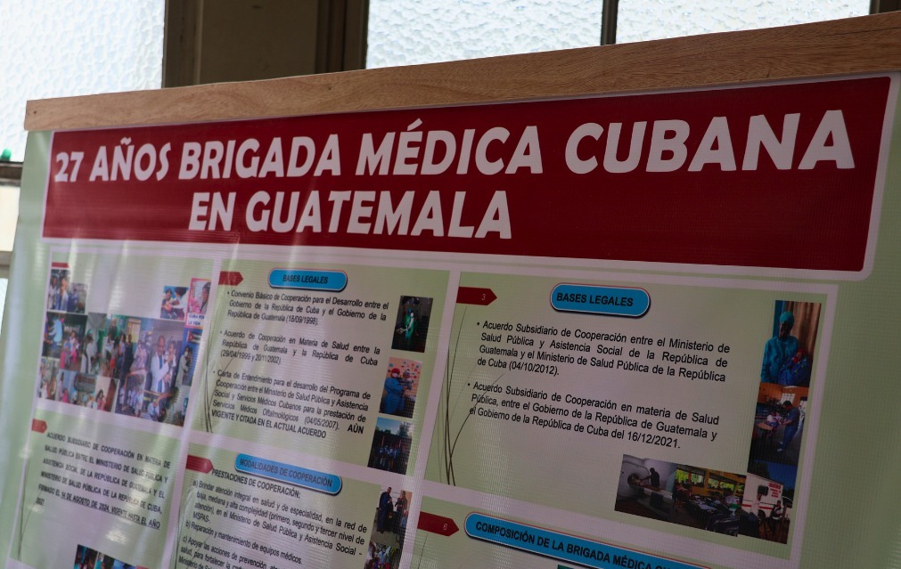 Ciudad de Guatemala, 5 nov (AGN).– Se llevó a cabo un acto conmemorativo por los 27 años de la llegada de la Brigada Médica Cubana a Guatemala. La actividad contó con la presencia del embajador de la República de Cuba en Guatemala, Nazario Fernández; la jefa de la Misión Médica Cubana, doctora Marieta Cutiño Rodríguez. Además de autoridades del Ministerio de Salud Pública y Asistencia Social (MSPAS); el gobernador de Guatemala, Mauricio Roberto Benard, y representantes de organismos internacionales y miembros del cuerpo diplomático.