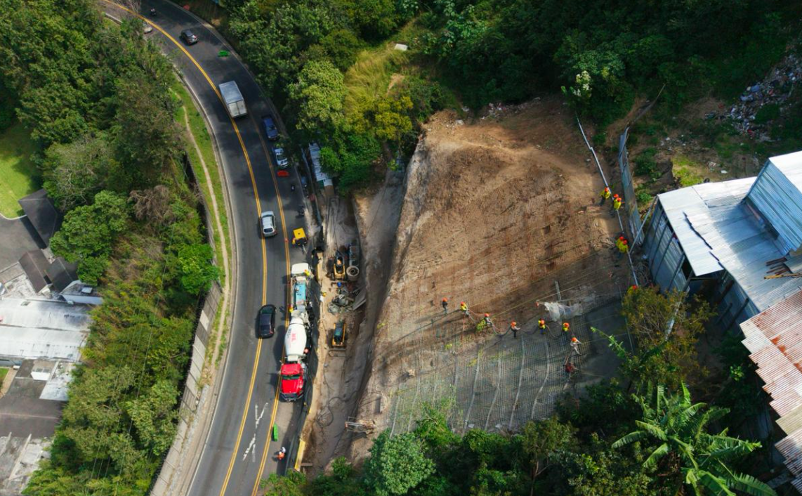 Ciudad de Guatemala, 5 nov (AGN).- Entre la avenida Hincapié y Boca del Monte, los equipos de la Unidad Ejecutora de Conservación Vial (Covial) continúan trabajando para reforzar la ladera de la montaña en la cual se encuentra la ruta intermunicipal, donde en meses recientes se registró un derrumbe de gran magnitud.