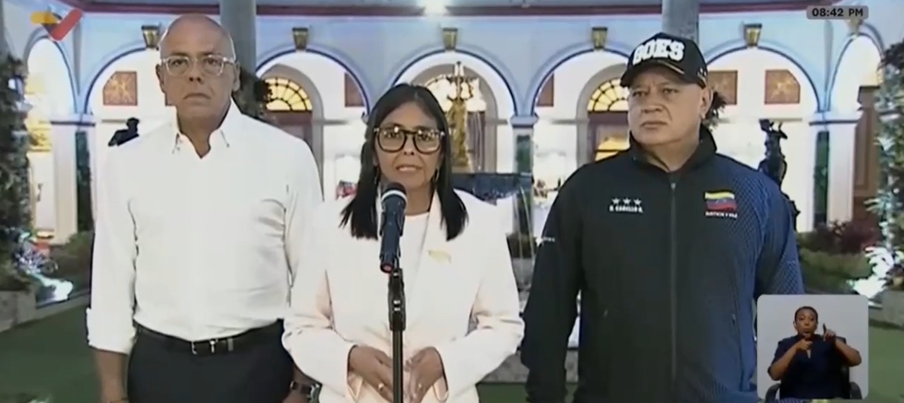 Tenemos que trabajar con esfuerzo, tenemos que trabajar con respeto, manifestó Delcy Rodríguez, en compañía de su hermano y presidente del Parlamento, Jorge Rodríguez, y el ministro de Interior, Diosdado Cabello, en una transmisión del canal estatal VTV.