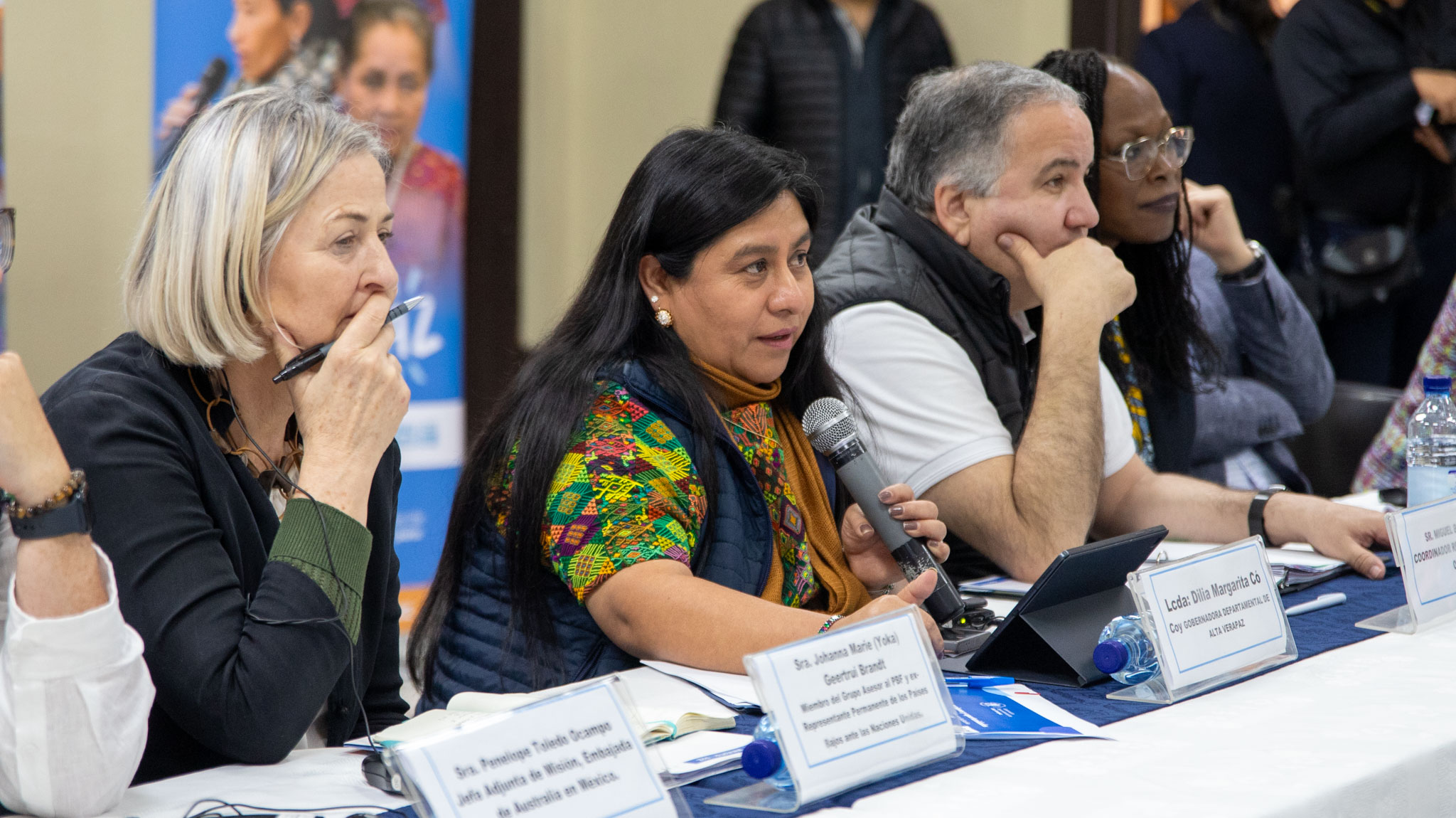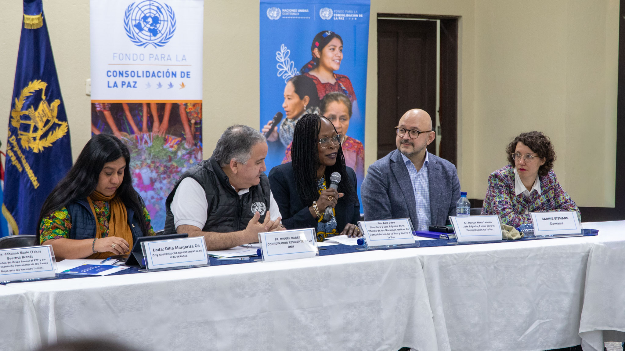 La reunión fue encabezada por Dilia Margarita Có Coy, gobernadora de Alta Verapaz, y contó con la participación de Miguel Barreto, Coordinador Residente del Sistema de las Naciones Unidas en Guatemala y Copresidente del Comité Ejecutivo del PBF, así como de Awa Dabo, Directora y Jefa Adjunta de la Oficina de Apoyo a la Consolidación de la Paz.