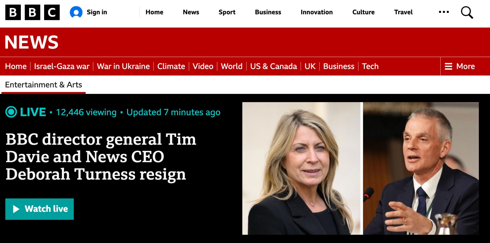 El presidente del Consejo de la emisora, Samir Shah, agradeció su “dedicación y compromiso” a Davie y Turness y declaró: “Hoy es un día triste para la BBC”.