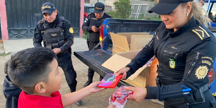 En Quetzaltenango, agentes de la Policía Nacional Civil, entregaron juguetes a niños de las colonias Las Tapias y La Cipresada, en cumplimiento al MOPSIC y al acercamiento de las fiestas navideñas y de fin de año. pic.twitter.com/tQV8EZljzd