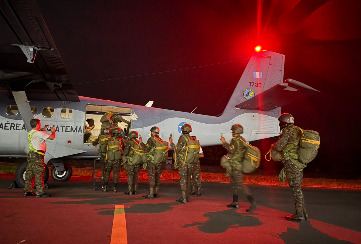 Ciudad de Guatemala, 5 mar (AGN).- El Ejército de Guatemala reforzó las acciones de seguridad fronteriza entre Guatemala y México mediante un salto aerotransportado nocturno realizado por la Brigada de Paracaidistas, como parte de las operaciones que se desarrollan en la línea divisoria entre ambos países.