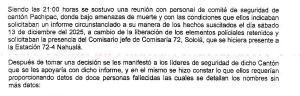 Las autoridades de la PNC explicaron que es importante recalcar y dejar constancia de que el informe circunstanciado que menciona la existencia de 12 personas fallecidas fue redactado y firmado bajo amenazas de muerte, con los policías retenidos, golpeados y en peligro extremo.