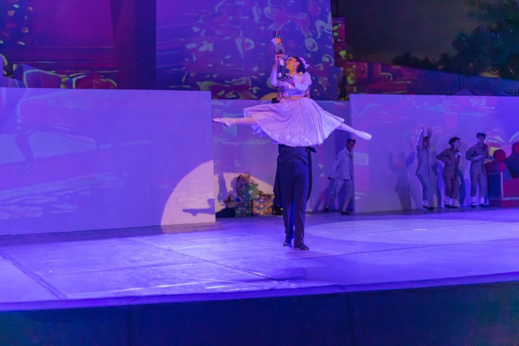 La obra transportó al público a la Nochebuena de Clara, quien tras recibir un cascanueces de su tío Drosselmeyer, emprende un viaje onírico a lugares fantásticos. Los asistentes presenciaron la emocionante batalla entre soldados y el ejército de ratones, para luego recorrer el Reino de las Nieves y el colorido Reino de la Fantasía.