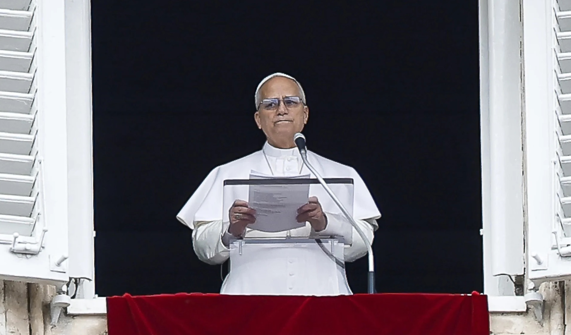 El papa León XIV, durante su mensaje dominical frente a la plaza de San Pedro, en el Vaticano.