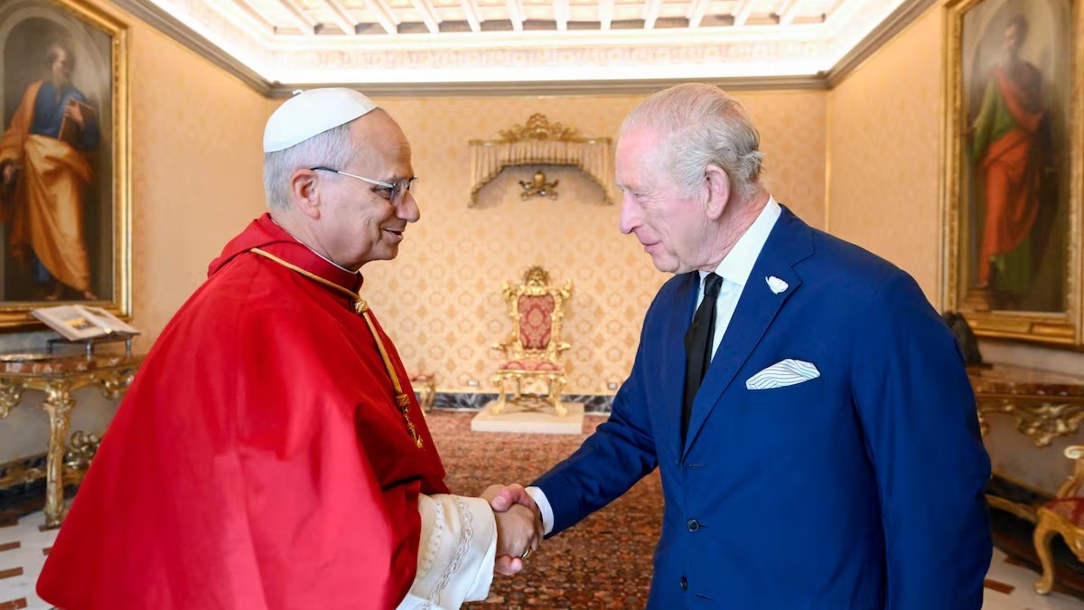León XIV y los reyes británicos se reunieron en privado durante cerca 45 minutos en la Biblioteca apostólica.
