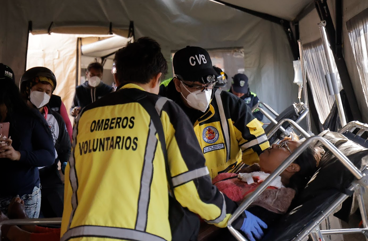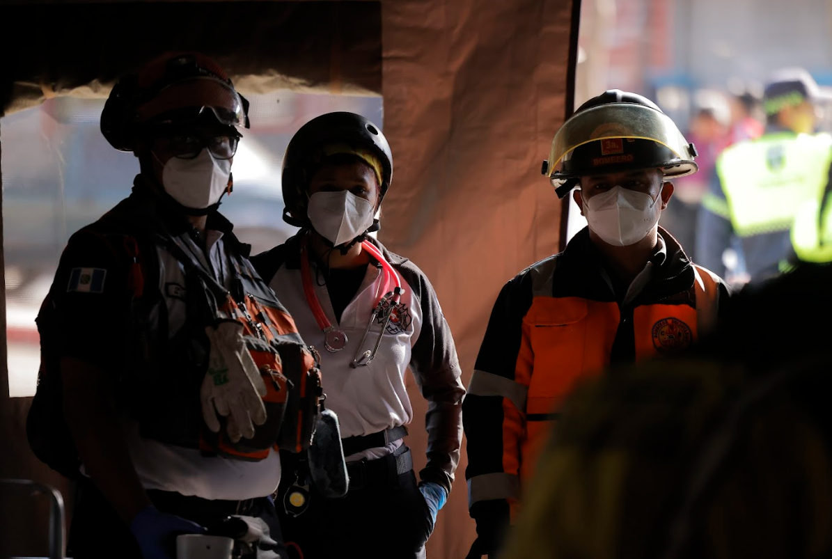 En el sector de El Ceibal, la unidad canina de rescate de Bomberos Voluntarios, como parte del Sistema CONRED, realizó labores de búsqueda y localización de personas atrapadas entre estructuras colapsadas, utilizando perros entrenados para detectar señales de vida.