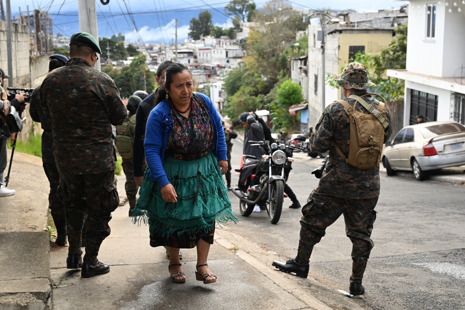 La zona 18, durante años marcada por la presencia de estructuras delictivas, despertaba este martes con una imagen distinta. Desde tempranas horas, las fuerzas de seguridad se posicionaban de manera simultánea en puntos estratégicos. Calles que normalmente veían el ir y venir cotidiano de vecinos apresurados, ahora observaban retenes, patrullas y soldados monitoreando el panorama y listos para actuar.