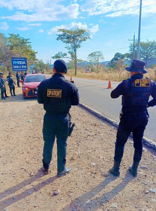 Chiquimula, 27 ene (AGN). – En el marco de las acciones de seguridad implementadas durante el estado de sitio, agentes de la División de Protección de Fronteras (Dipafront), sede Agua Caliente, apayan operativos de control en el kilómetro 204 de la ruta hacia Esquipulas, como parte de las estrategias para fortalecer la seguridad en el departamento.