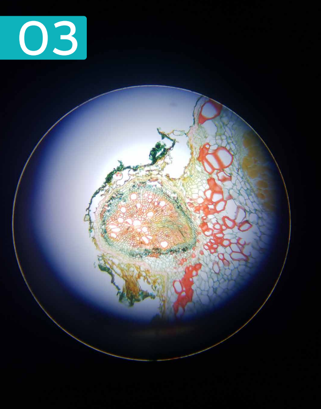 Anatomía de un tallo (Irene Marisol Cal): Muestra un corte transversal del quinto entrenudo de la angiosperma salvialeucantha.