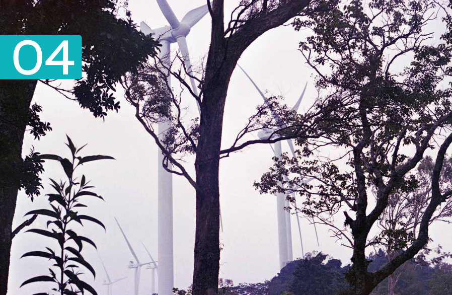 Árboles de metal (Ricardo Javier Paz): Ilustra la sinergia entre tecnología y naturaleza en un intento de coexistencia armónica. Árboles y estructuras de acero, surgidos de la misma tierra, cohabitan para generar electricidad. Esta fotografía simboliza el esfuerzo de Guatemala por integrar energías renovables y construir una red de producción eléctrica sostenible y respetuosa con el medio ambiente.