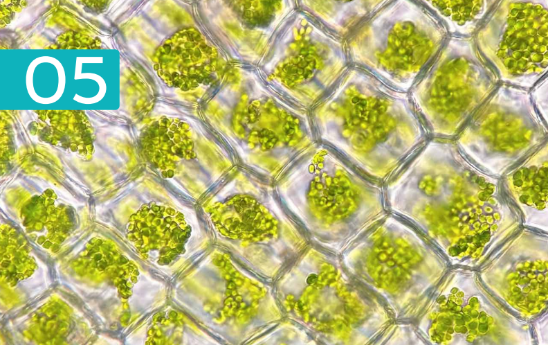 Tejido de vida (Barbara Mariel Recinos): La micrografía de una hoja de Elodea a 40x de aumento revela su epidermis: una red ordenada de células alargadas y cristalinas.