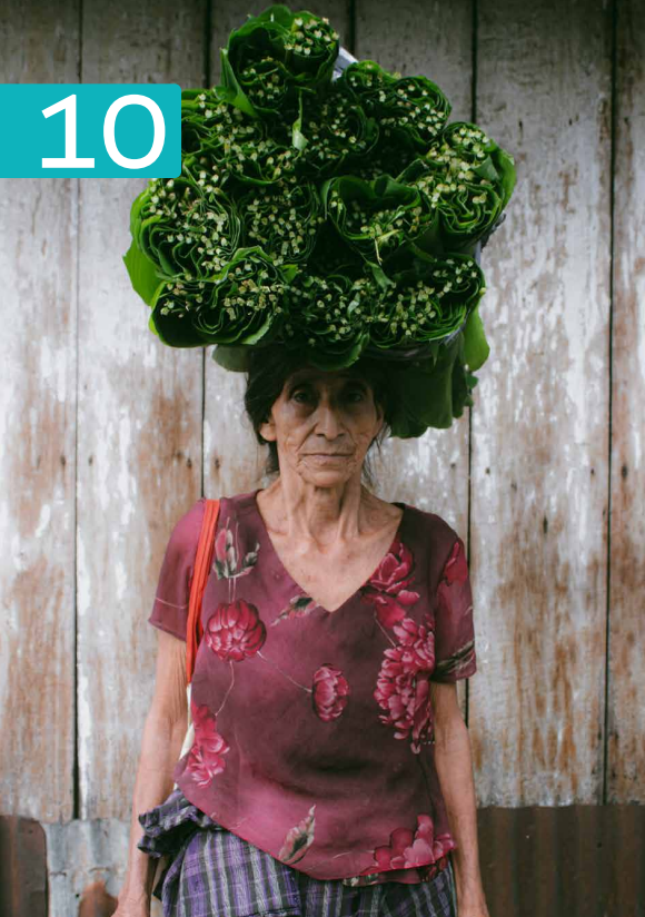 Mujer trabajadora (Cristian Orlando Pérez): Representación de una mujer trabajadora que transporta sobre su cabeza manojos con hojas de bijao, recién recolectadas en las primeras horas de la mañana.
