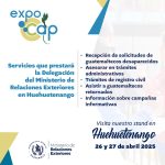 La ExpoCAP se realizará este 26 y 27 de abril enfrente del edificio de Gobernación Departamental de Huehuetenango, donde cada una de las instituciones gubernamentales participantes darán a conocer los proyectos y programas que trabajan. La finalidad es que la población sea beneficiada en algunas de ellas, además, se dará información acerca del Plan Retorno Seguro como estrategia interinstitucional para la reintegración social de la población migrante.