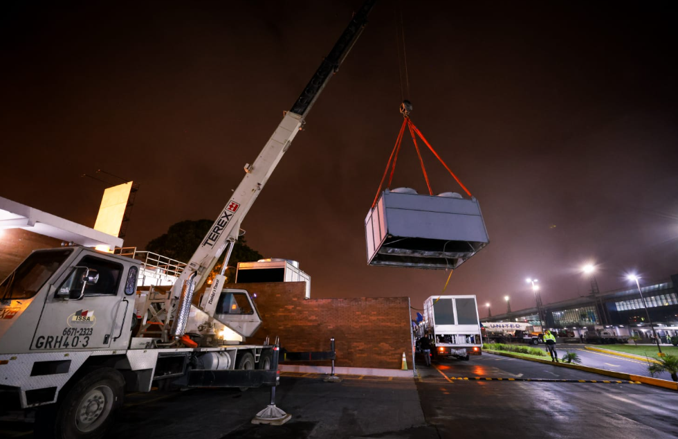 Durante la madrugada de este miércoles, se completó la instalación de la cuarta y última torre de enfriamiento para asegurar el servicio de aire acondicionado en todos los sectores del aeropuerto, contribuyendo a mejorar la experiencia de los viajeros nacionales y extranjeros.