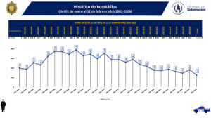 De acuerdo con la gráfica histórica que presentan las autoridades, este año se contabilizan 253 homicidios, consolidando una tendencia sostenida a la baja en los índices de violencia letal en el país.
