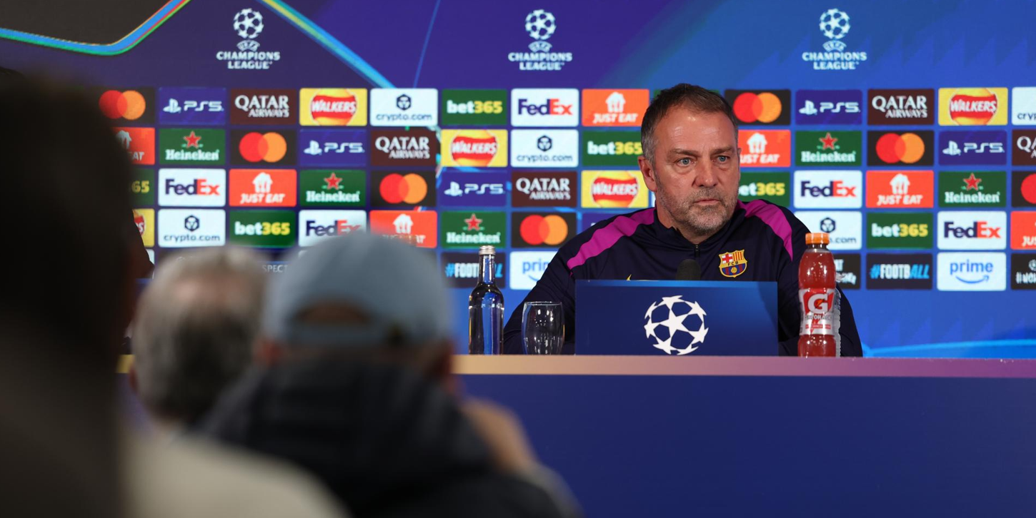 Hansi Flick se pronuncia antes de jugar los octavos de final de la Champions League. // Foto: EFE.