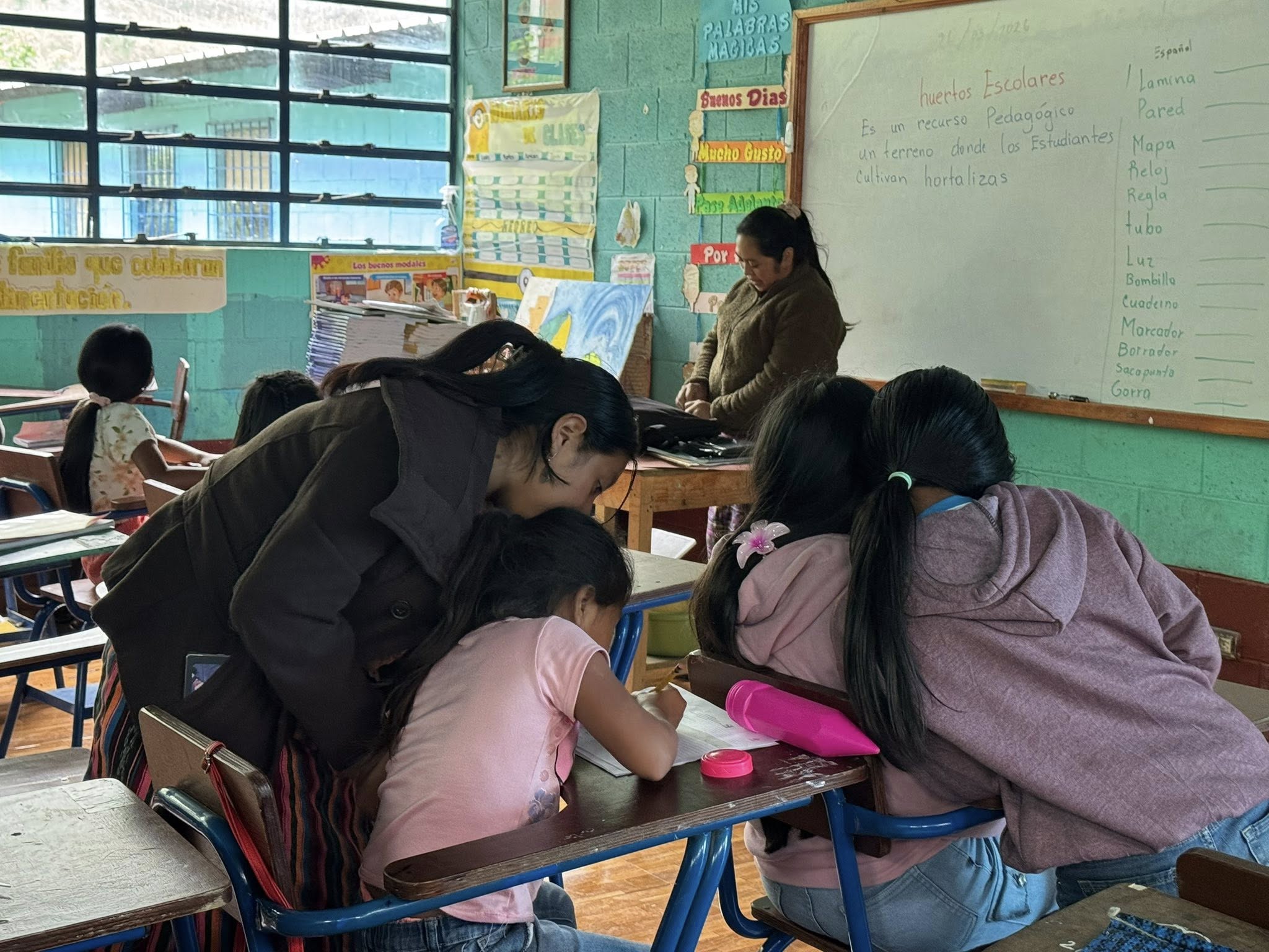 Durante la enseñanza, los profesionales de la comunidad lingüística uspanteka informan sobre la utilización de este idioma y les enseñan las palabras a los estudiantes.