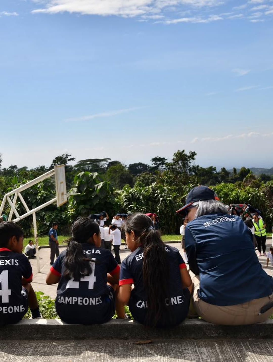 En la actividad participaron más de 350 estudiantes de las dos escuelas de la comunidad, quienes, junto a docentes, autoridades locales y personal de instituciones de primera respuesta, pusieron en práctica sus planes de emergencia y rutas de evacuación ante un escenario simulado de incremento en la actividad del volcán Santiaguito.