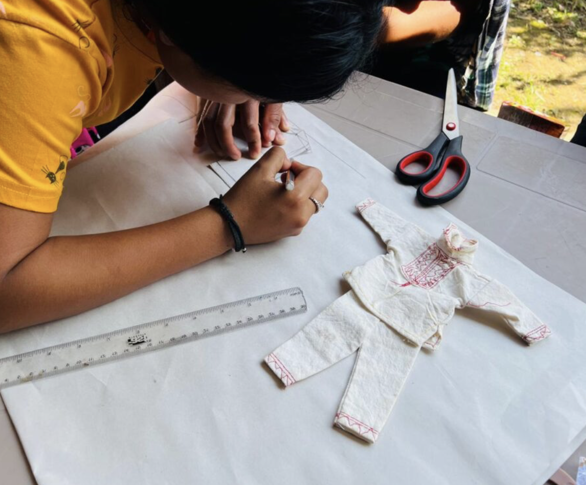 Durante la jornada, las participantes aprendieron técnicas para reproducir en pequeño las prendas tradicionales del pueblo Ch’orti’, integrando colores, formas y símbolos propios de esta herencia maya.