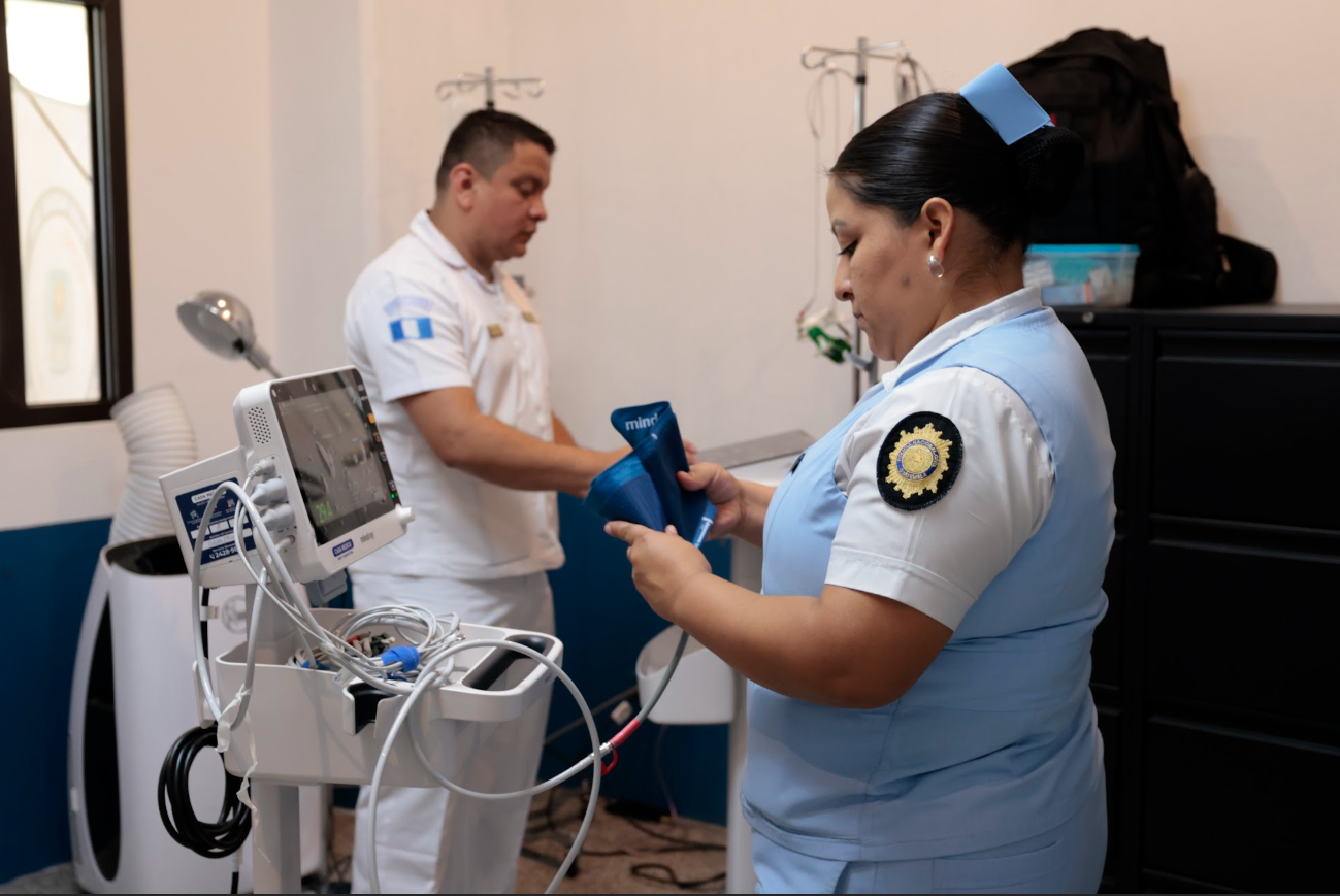 El espacio está equipado con insumos médicos nuevos y en óptimas condiciones, entre ellos un monitor de signos vitales, electrocardiograma, bomba de infusión, cilindro de oxígeno, nebulizador, silla de ruedas, cama hospitalaria, así como maletines de primeros auxilios y equipo especializado para la atención de emergencias.