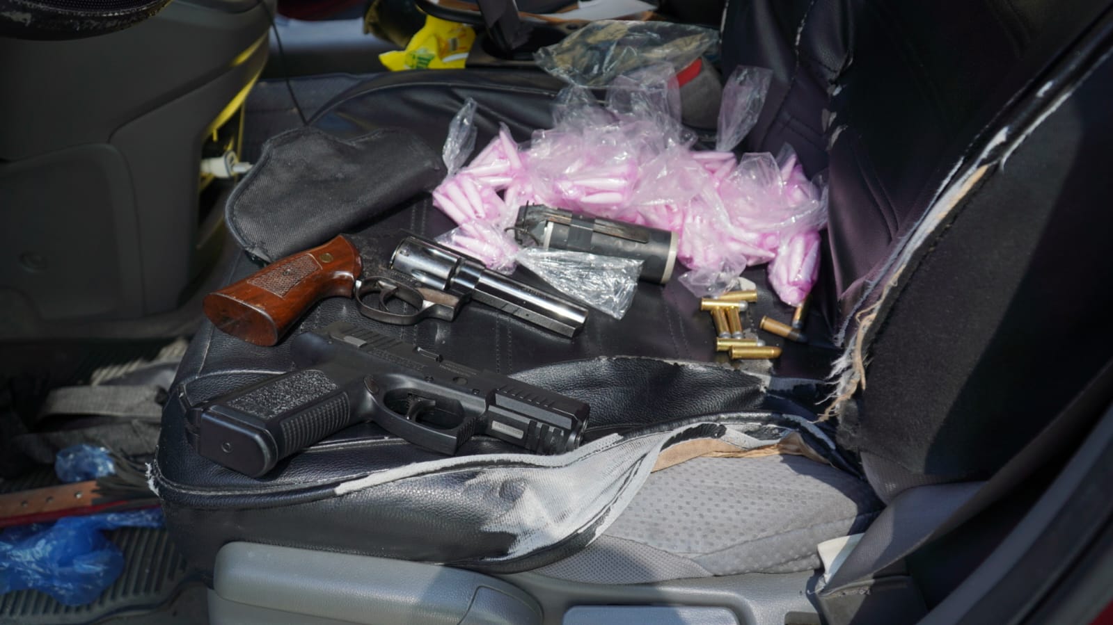 En el interior del automotor se localizó una pistola Taurus con registro esmerilado, dos tolvas y 35 municiones, 3 mil 900 quetzales en efectivo, seis colmillos y 16 cápsulas de cocaína, tres piedras de crack, un teléfono celular y varios documentos de identificación que serán objeto de análisis.