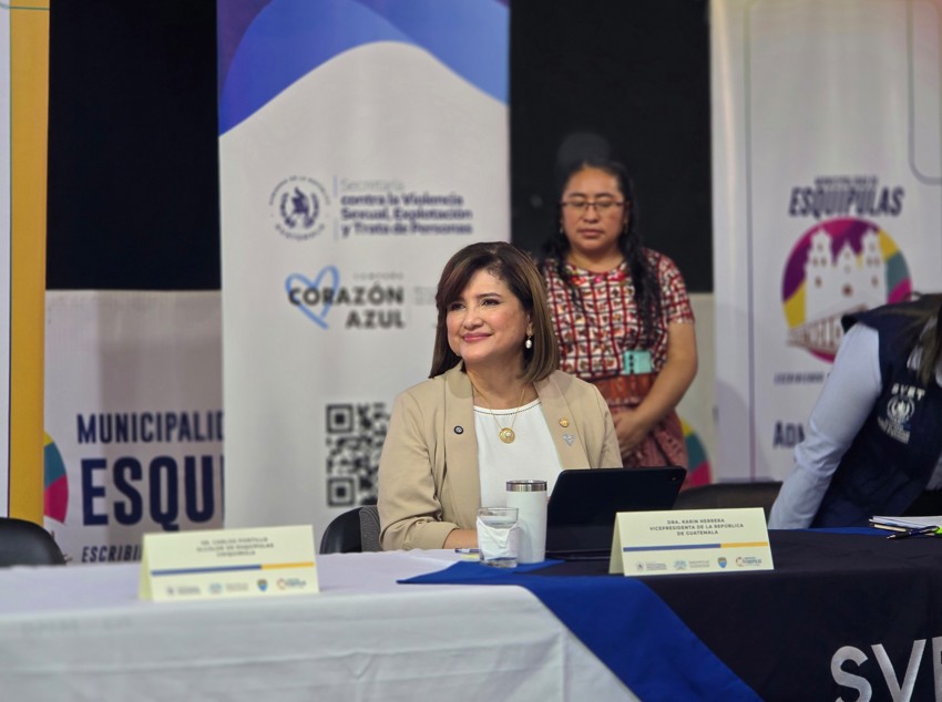 Chiquimula, 26 nov (AGN).– La Vicepresidenta Karin Herrera participó junto a la Secretaría contra la Violencia Sexual, Explotación y Trata de Personas (SVET) en el lanzamiento de la estrategia Esquipulas, Seguro y Libre de Violencia Sexual, Explotación y Trata de Personas, cuyo objetivo es fortalecer la prevención, atención y articulación interinstitucional en favor de la protección de la niñez, adolescencia y mujeres.