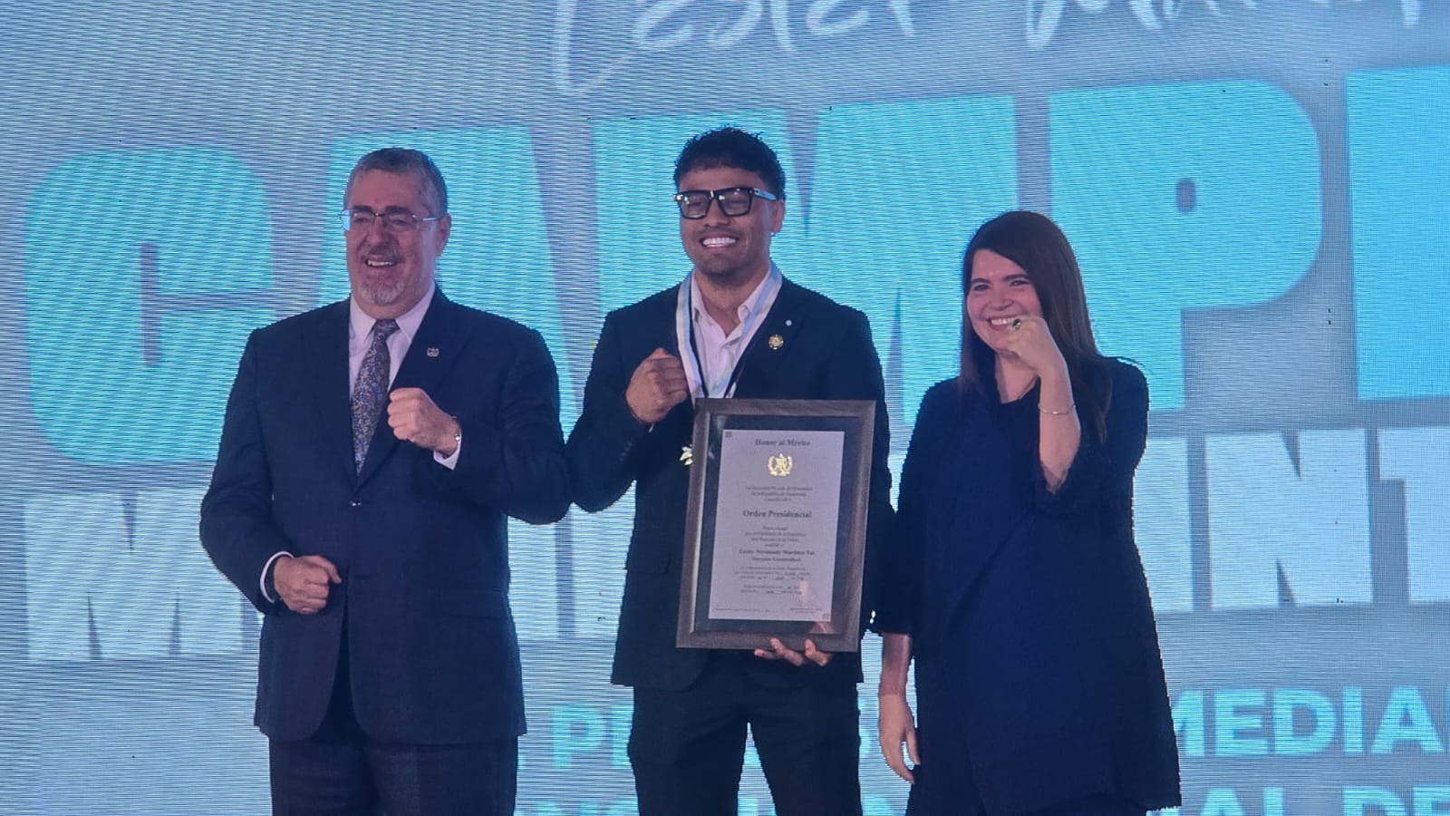 El acto se llevó a cabo en el emblemático Patio de la Paz del Palacio Nacional de la Cultura, escenario que fue testigo de un momento cargado de simbolismo. Ahí, el presidente Bernardo Arévalo entregó personalmente la distinción a Martínez, destacando no solo su logro deportivo, sino el impacto que ha generado en toda una nación.