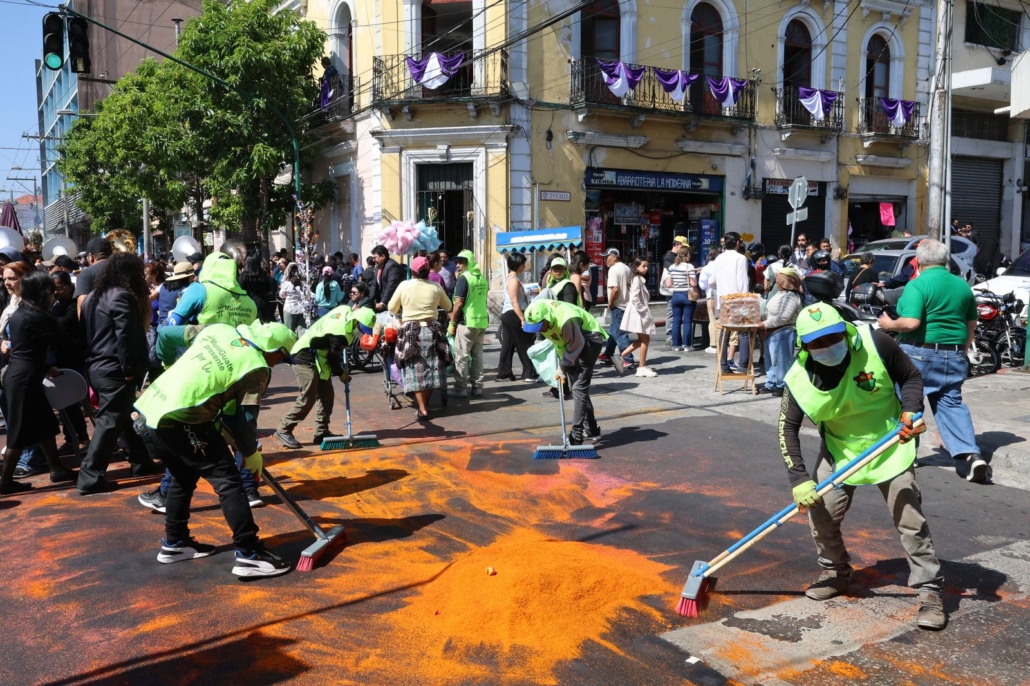 El trabajo del equipo de Limpia y Verde permite que la tradición de las alfombras continúe como una de las expresiones más emblemáticas de la Semana Santa en la ciudad, sin afectar la limpieza ni la movilidad.