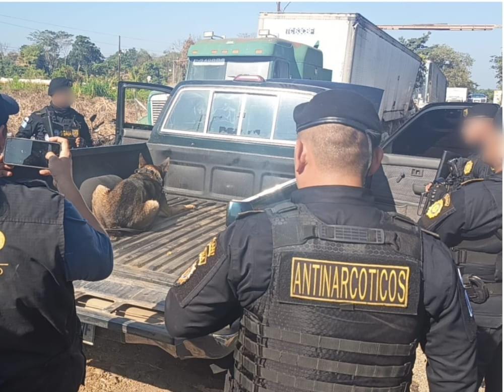 Ciudad de Guatemala, 20 feb (AGN).- La Policía Nacional Civil (PNC) interceptó un picop negro en la zona 5 de Retalhuleu. Durante la revisión del vehículo, un agente canino detectó anomalías en la parte trasera, por lo que se indagó más a fondo, encontrando un doble fondo que ocultaba varios paquetes.