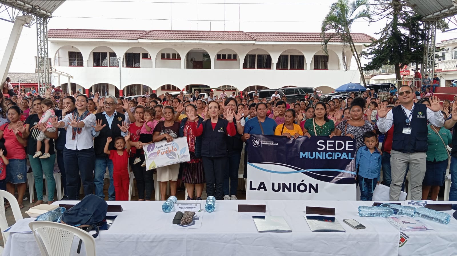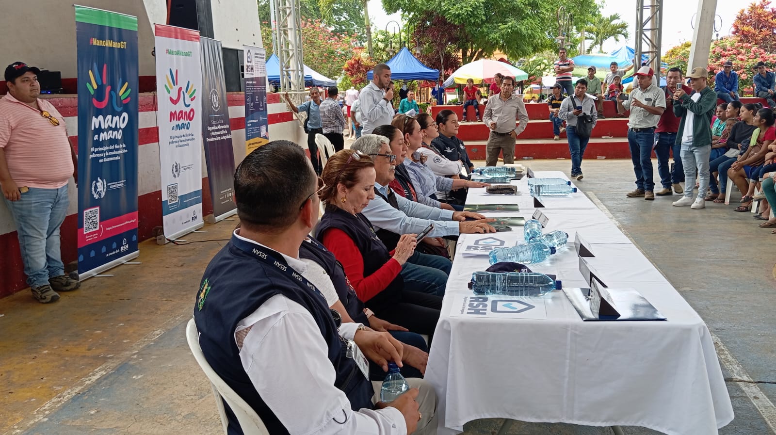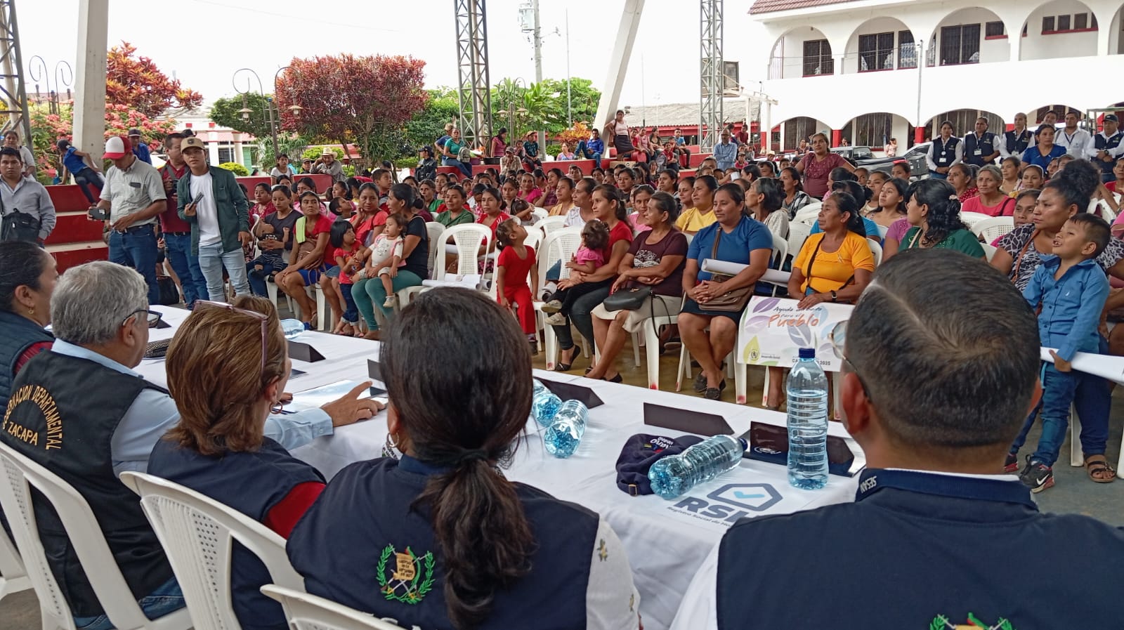 Al acto de primera entrega del Bono Social, realizado en el Polideportivo del municipio de La Unión Zacapa, asistió la viceministra de Desarrollo Social, Bertha Zapeta, representantes de la Secretaría de Seguridad Alimentaria y Nutricional (Sesan) y el alcalde municipal, Gustavo Galván.