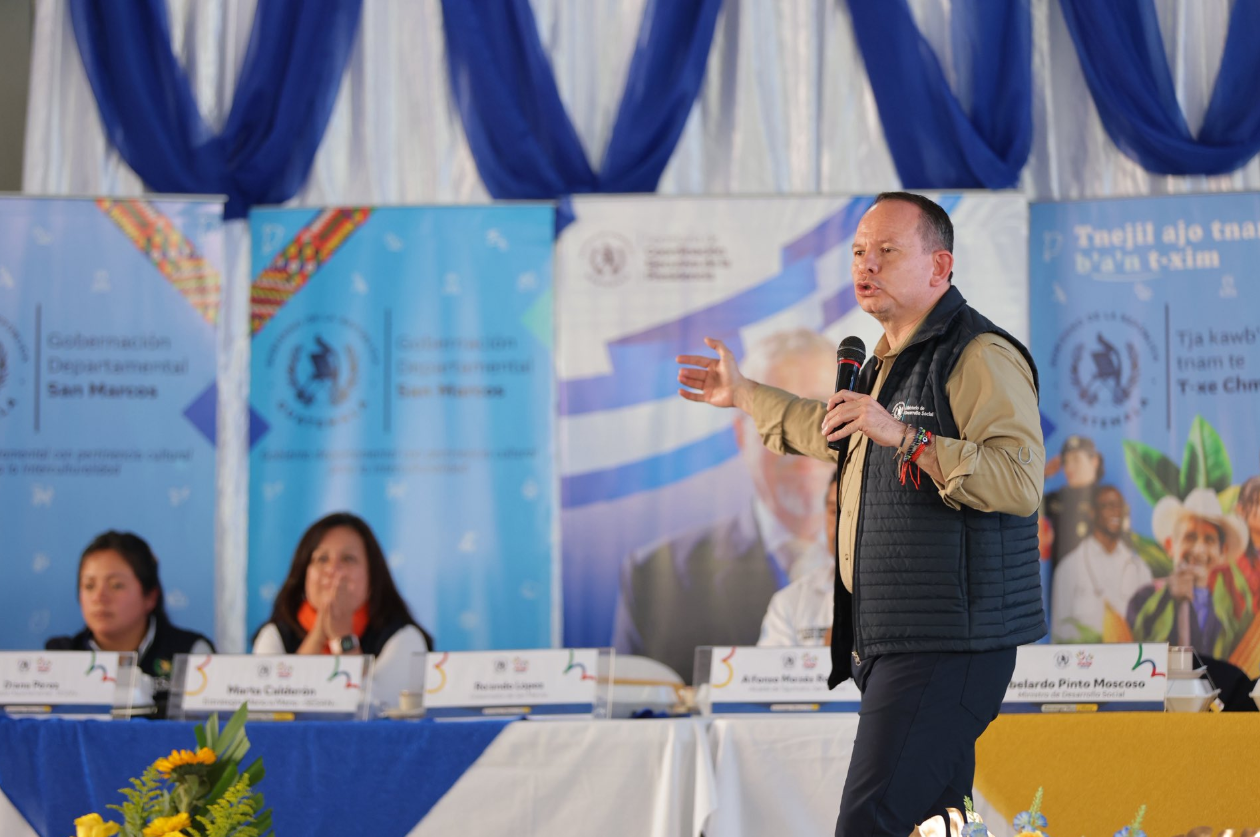El titular de la cartera de Desarrollo, Abelardo Pinto, se reunió con el Consejo Comunitario de Desarrollo (Comude) de Tajumulco para presentar el impacto de esta estrategia en territorios afectados por la pobreza y la pobreza extrema.