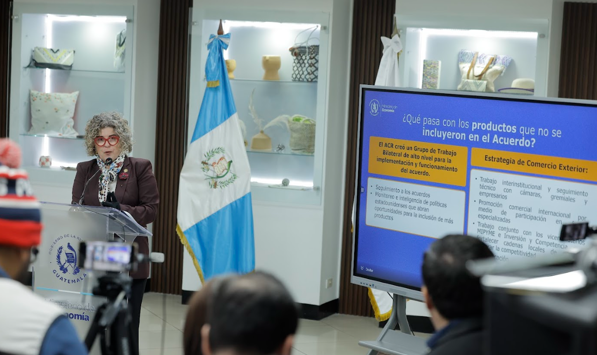 Ciudad de Guatemala, 2 feb. (AGN).- Tras la firma del Acuerdo del Comercio Recíproco entre Guatemala y Estados Unidos, la titular del Ministerio de Economía (Mineco), Gabriela García, destacó que esto permite que el 72.4 % de las exportaciones guatemaltecas ingresen al mercado estadounidense con arancel cero.